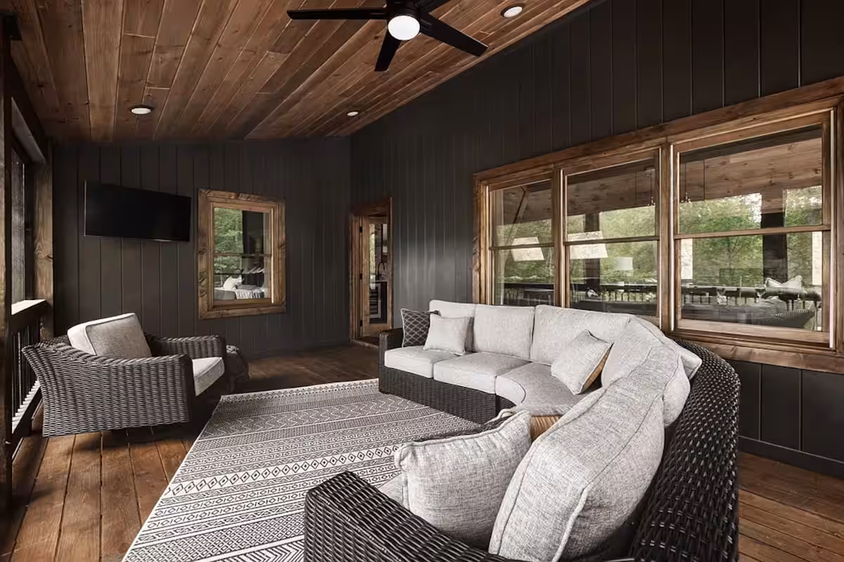 Morning yoga by the near-by creek. A glass of wine on the screened porch. Movies under blankets, sizzling dinners from the grill, or star-studded nights in the hot tub. When the fire crackles and the forest hushes, you’ll feel it, that moment where the world goes soft, and you finally rest.