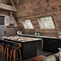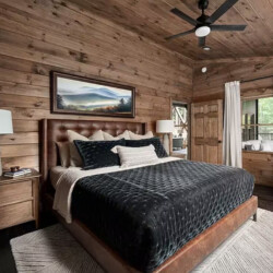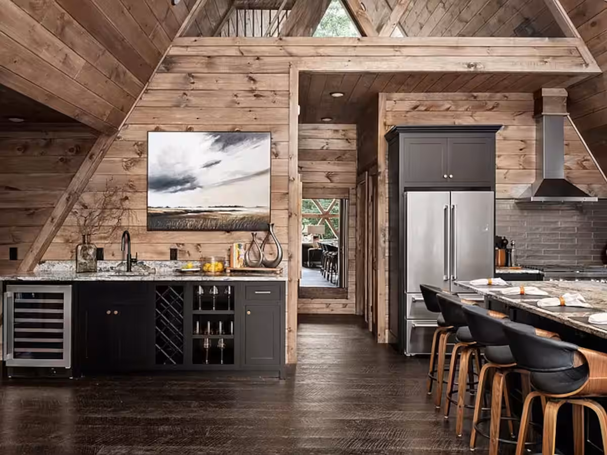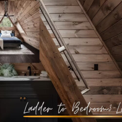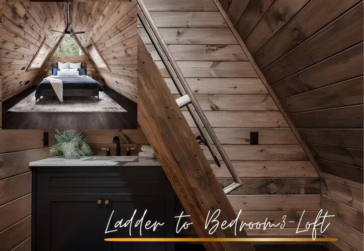 Three beautifully designed bedrooms each feature plush king beds, soft lighting, and soothing natural tones for deep, restorative sleep. Two bedrooms downstairs offer ensuite luxury, while the cozy loft bedroom (accessed by a ladder) has a half bath below for convenience. Spa-inspired details and high-end linens create rest that feels like ritual.