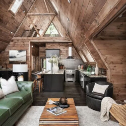 This newly built luxury A-Frame stands tall among the trees, clean lines, rich timber, and walls of glass framing the mountains like art. Wind moves through the pines, and the world finally quiets, just a short walk to beautiful babbling creek.