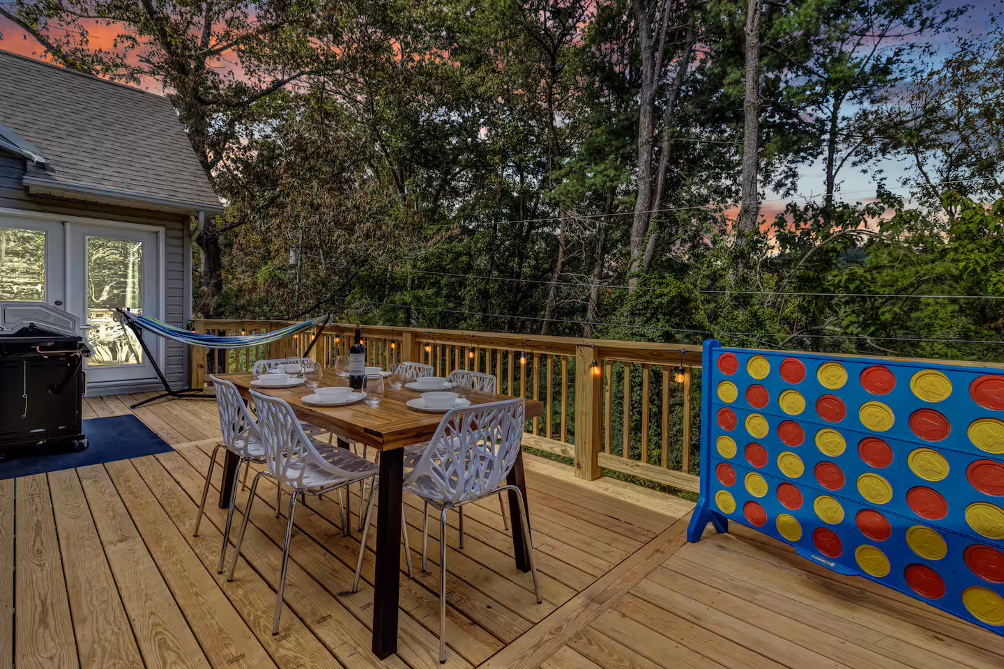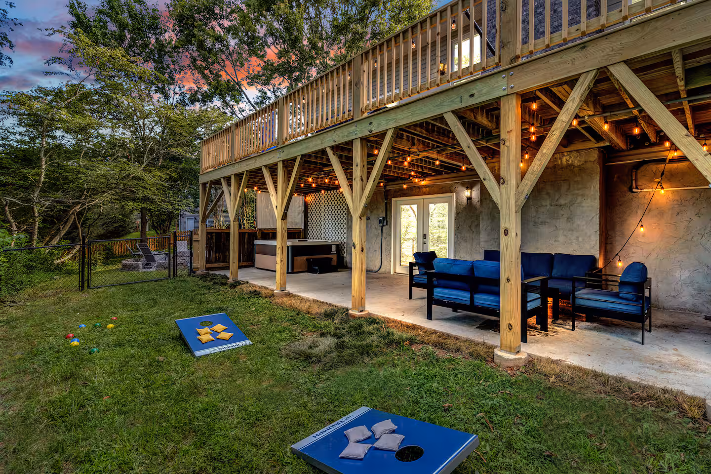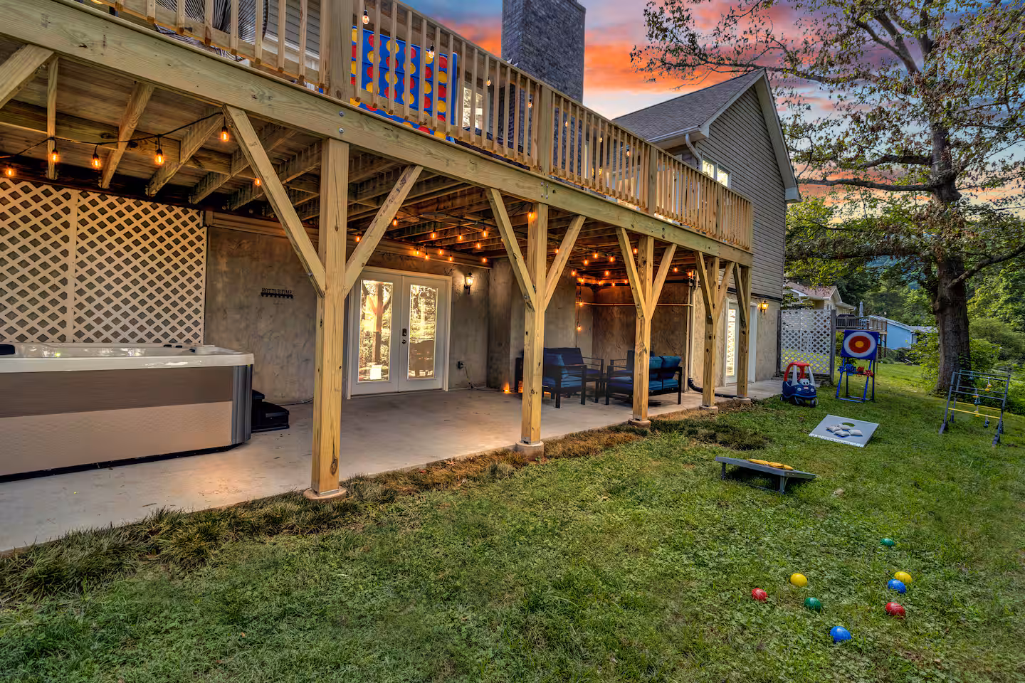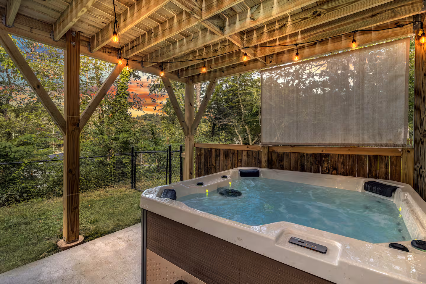 Relax under the stars in the spacious hot tub, perfect for soothing tired muscles after a day exploring Asheville.