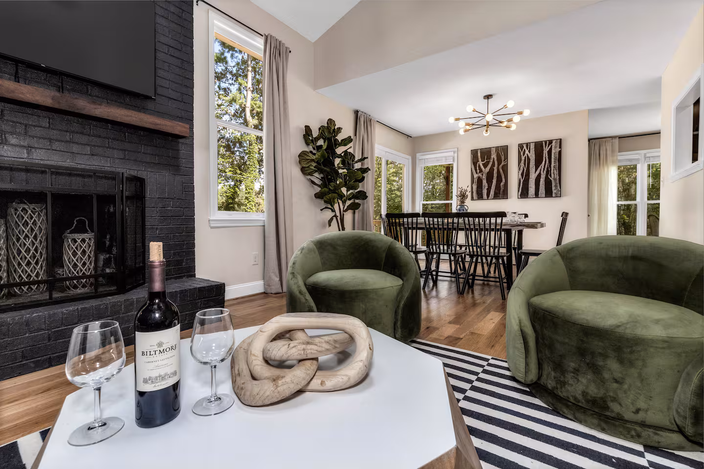 Nestled in a peaceful east Asheville neighborhood, this recently remodeled home offers the perfect blend of Asheville charm and nonstop fun. Tucked away on a quiet cul-de-sac, you’ll enjoy privacy and tranquility just 12 minutes from downtown Asheville. With easy year-round access on paved roads—no steep hills to navigate—this prime location puts you close to top attractions like Asheville Mall (10 minutes), Biltmore (15-20 minutes), the River Arts District (15–20 minutes), Western North Carolina Nature Center (10 minutes), and Asheville Regional Airport (30 minutes). Experience the best of both worlds: a serene retreat near the heart of the city.