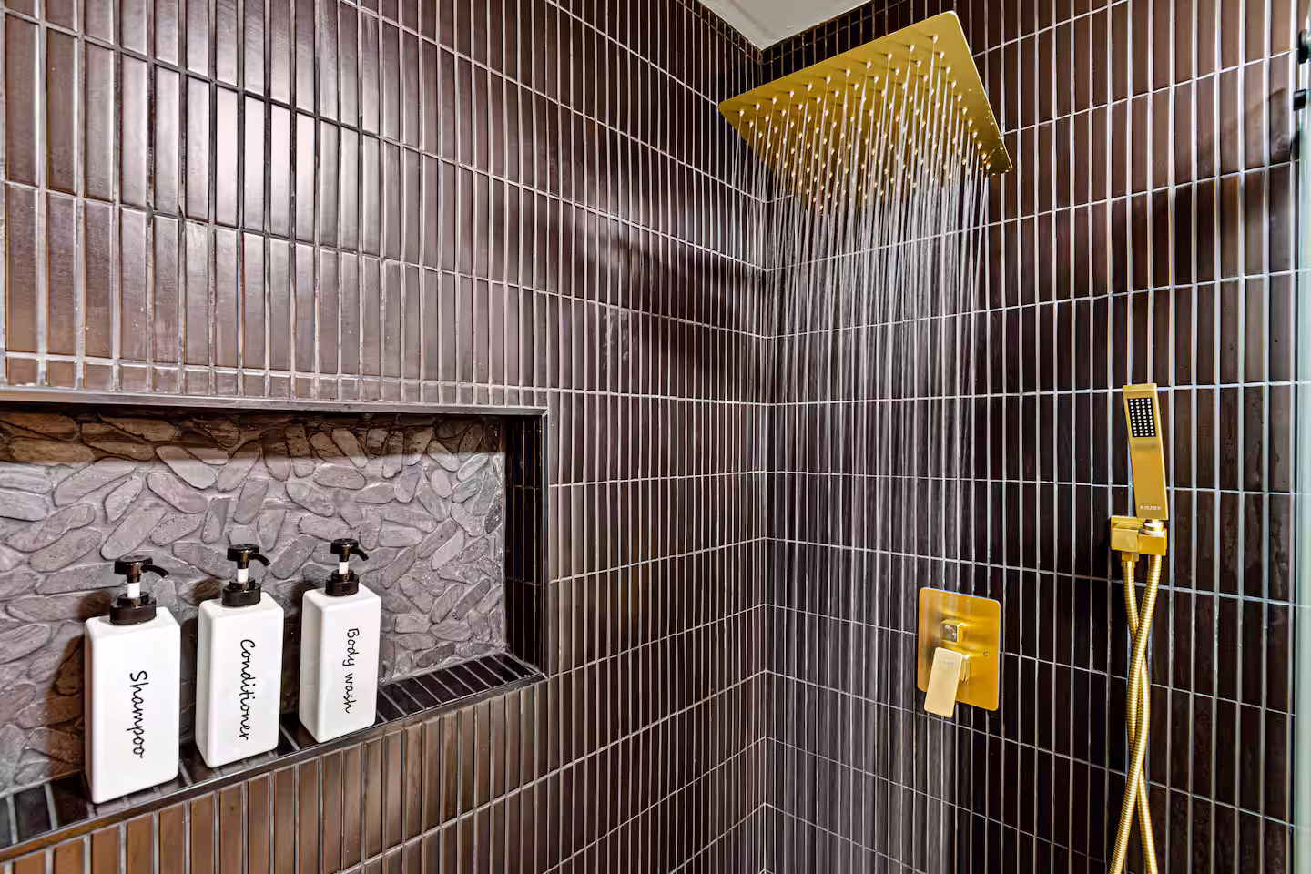 The outdoor spaces invite both adventure and relaxation. Ease into the bubbling hot tub or unwind in the barrel sauna after a day of exploring Blue Ridge. As the evening sets in, gather around the fire pit for stories and stargazing, surrounded by the gentle sounds of the woods. The driveway doubles as a pickleball and basketball court, adding a playful touch for guests who love a little friendly competition.
