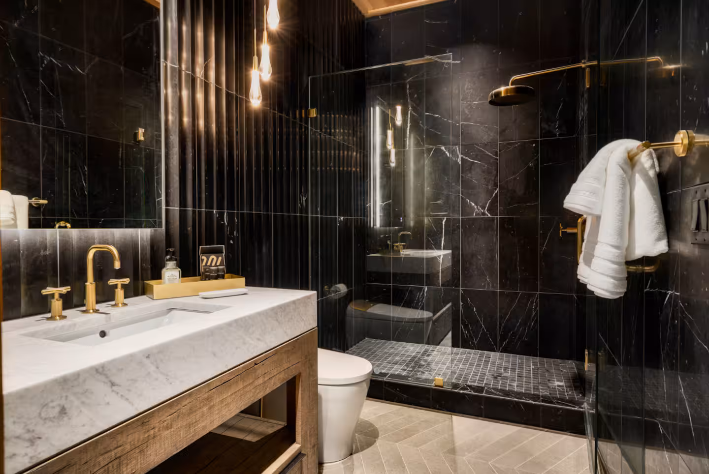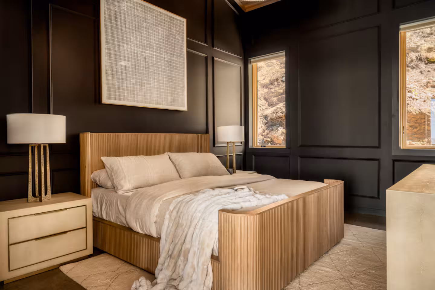 Each of the three bedrooms is a private sanctuary featuring a king-size bed, luxurious linens, smart TV, and designer touches. With three spa-inspired bathrooms, guests can enjoy privacy and relaxation with high-end fixtures and plush towels.