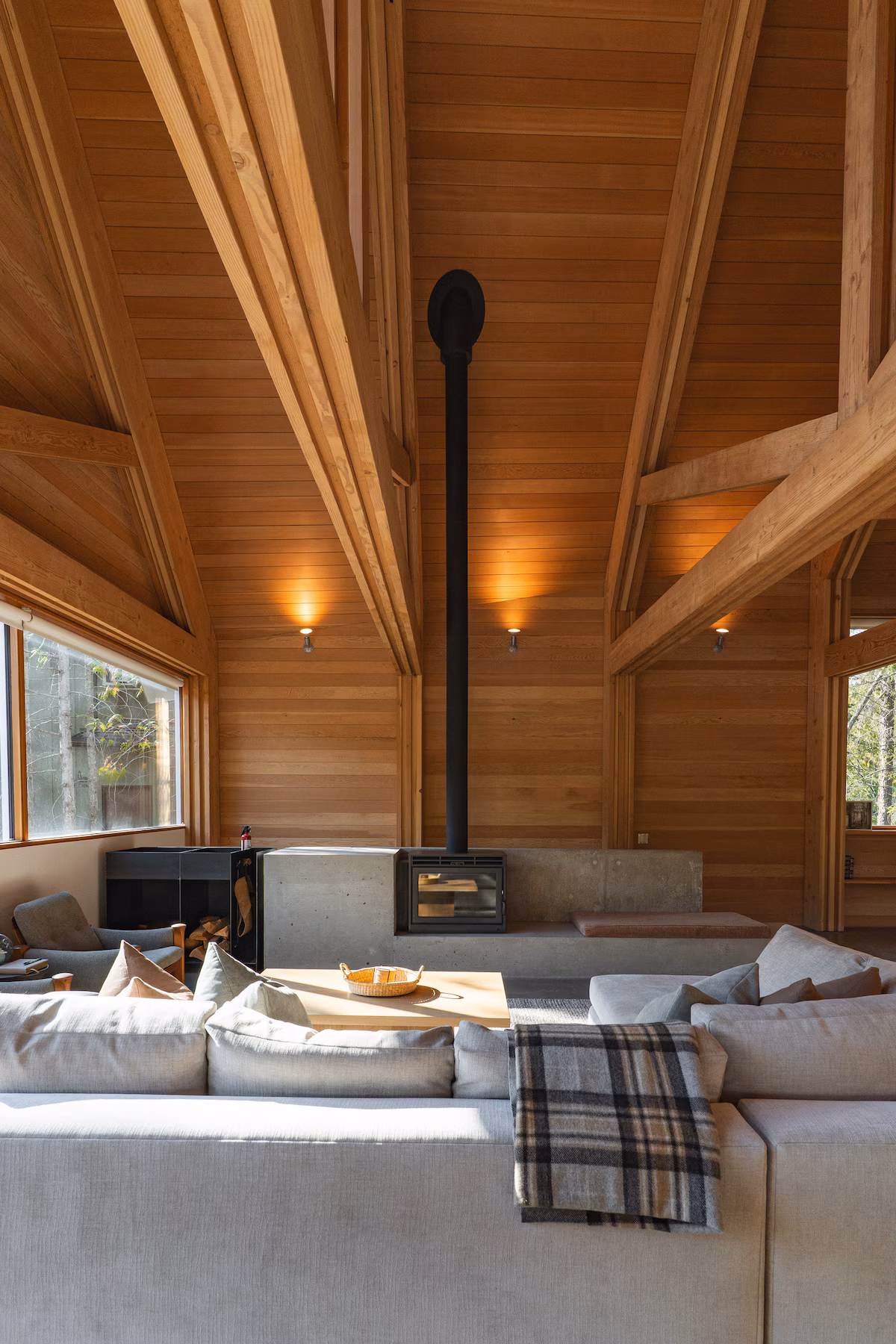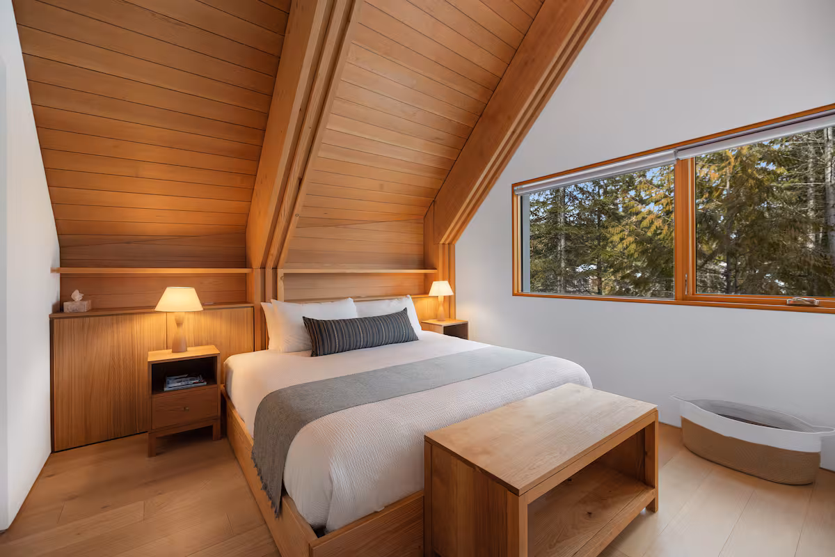 Step into an expansive living area with 25-foot architectural ceilings and curated Canadian-made furnishings. The 15-foot island invites gatherings, while the cedar hot tub (fits 6) offers deep relaxation. Enjoy indoor/outdoor living spring through fall with sliding doors that open to a spacious patio.