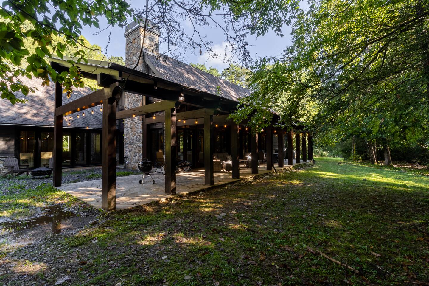 Experience the tranquility of the Modern Mountain Creekhouse. The covered porch is the perfect spot to enjoy the soothing sounds of the creek. Grab a cup of coffee or a glass of wine while kids can have fun splashing around. End your day with s’mores over the fire pit, creating memories that will draw you back to this peaceful retreat.