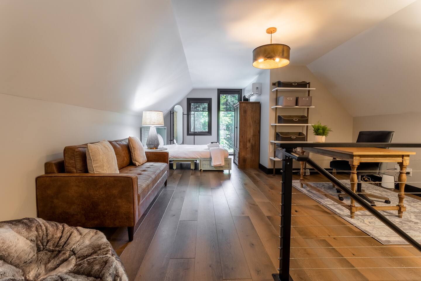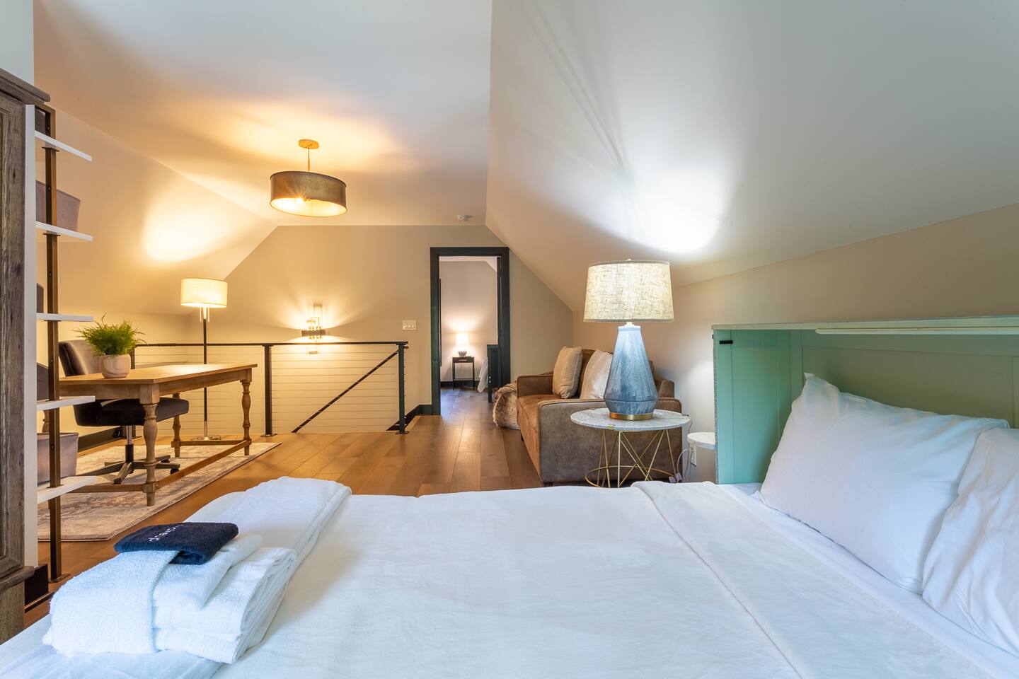 – Queen Murphy bed in upper-level office/sitting room