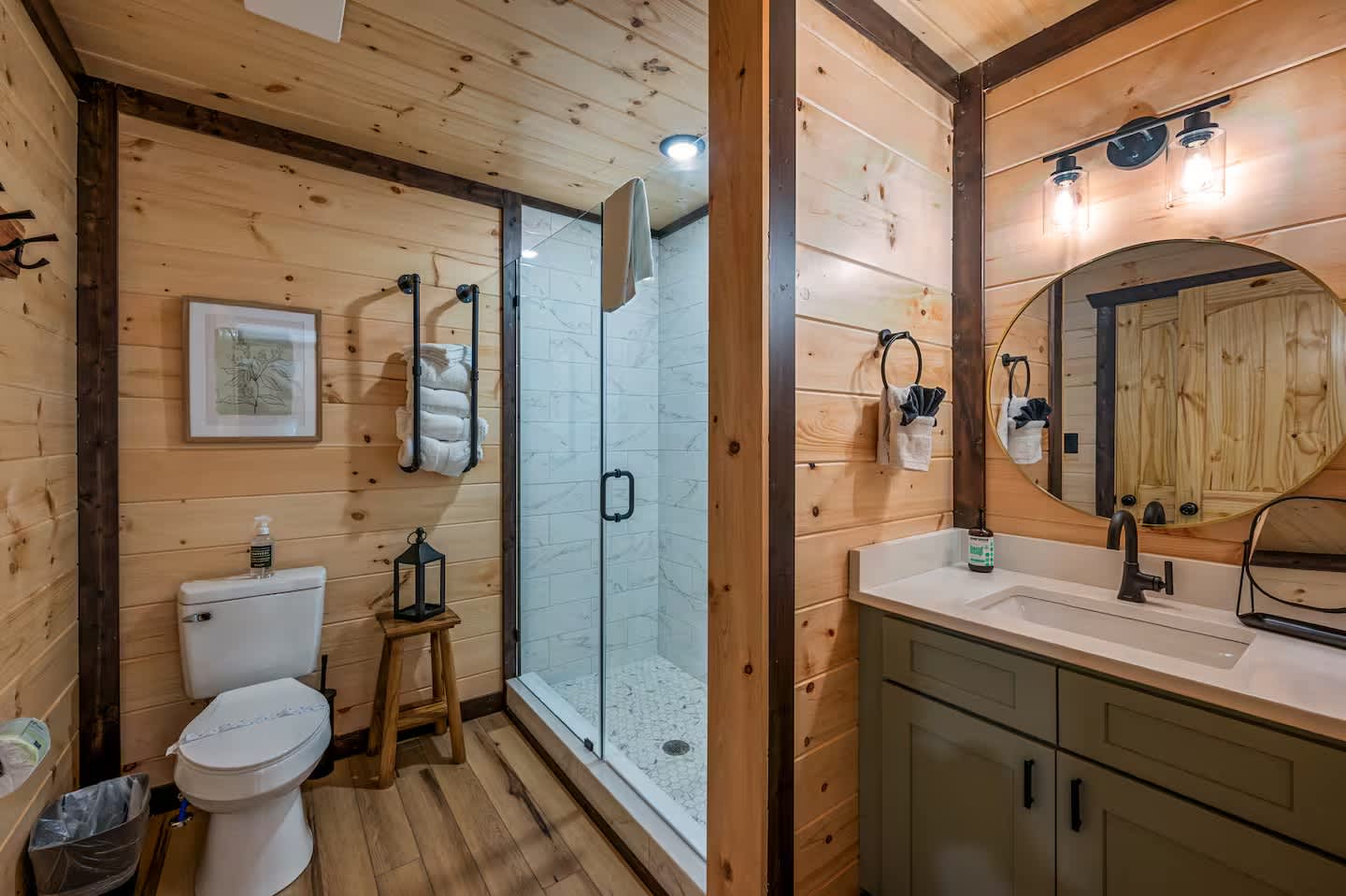 Welcome to The Green Acorn — a luxe mountain chalet just minutes from Pigeon Forge, Gatlinburg, and The Great Smoky Mountain National Park. Enjoy stunning year-round views from the covered deck. Inside, this 1,350 sq ft retreat sleeps 7 with a king suite, queen bedroom, and triple bunk in the loft. Thoughtfully designed for comfort and connection, it’s the perfect base camp for adventure and relaxation.