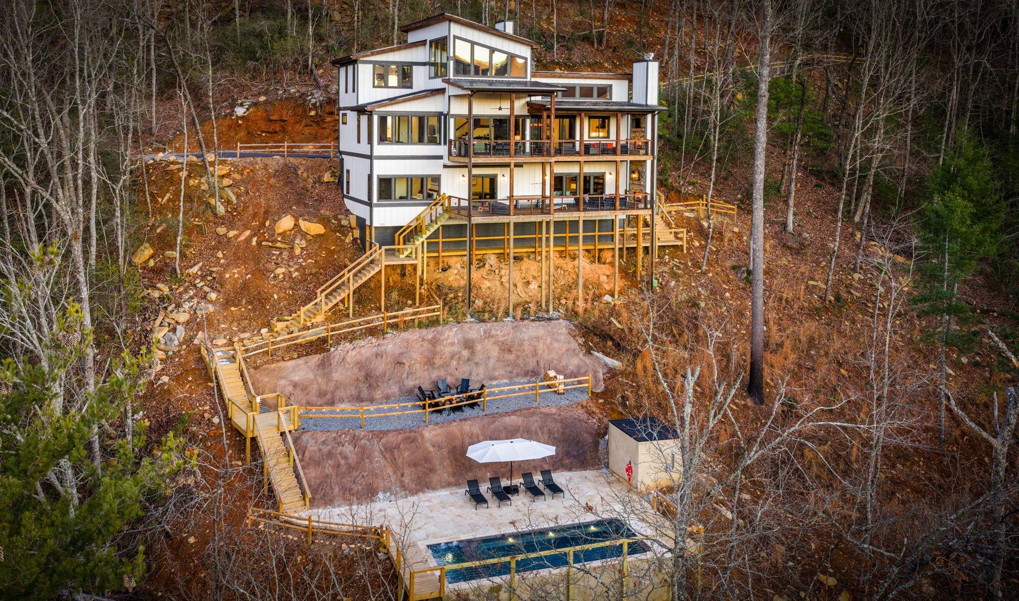 Welcome to Infinity Ridge, where the mountains stretch beyond the horizon and luxury wraps around every moment. Perched high above Blue Ridge, this modern three-level retreat was designed for travelers who crave spaciousness, serenity, and style… a place where mornings begin with soft mist rising over the peaks and evenings melt into golden infinity sunsets.