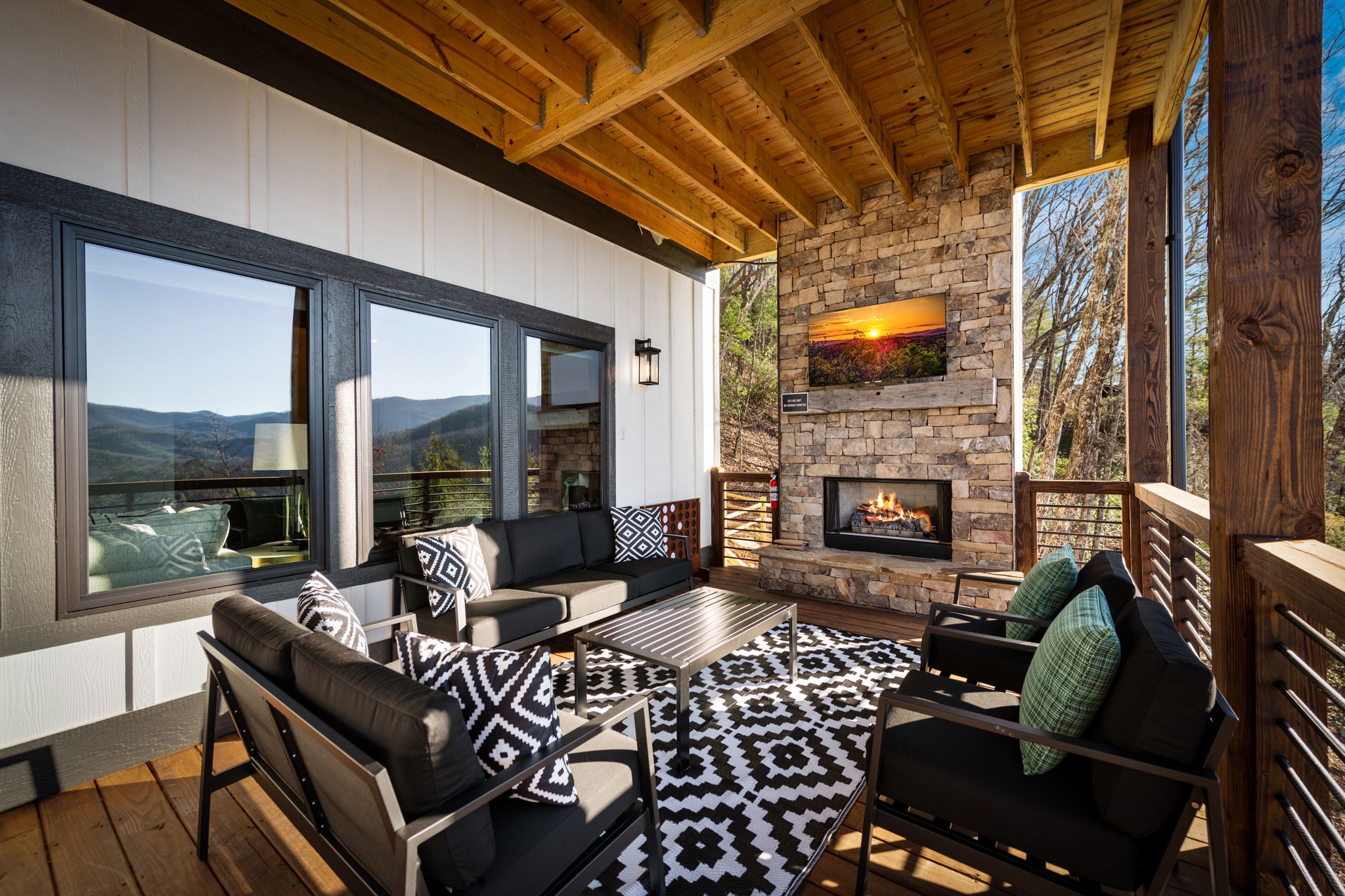 • Multi-level outdoor decks with infinite mountain views, and stone gas fireplaces