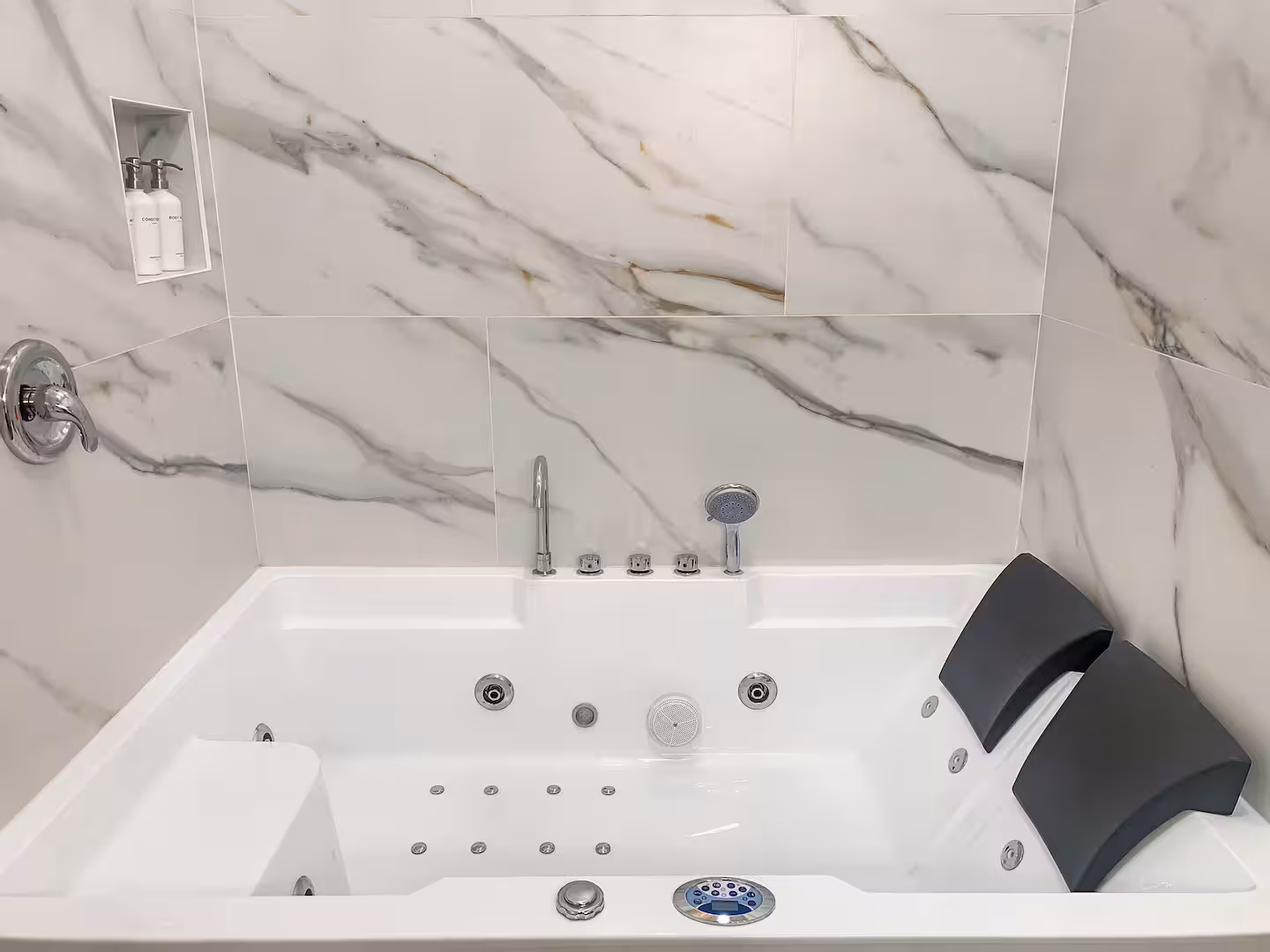 Upstairs bathroom with a luxurious jacuzzi tub and bidet for a spa-like retreat