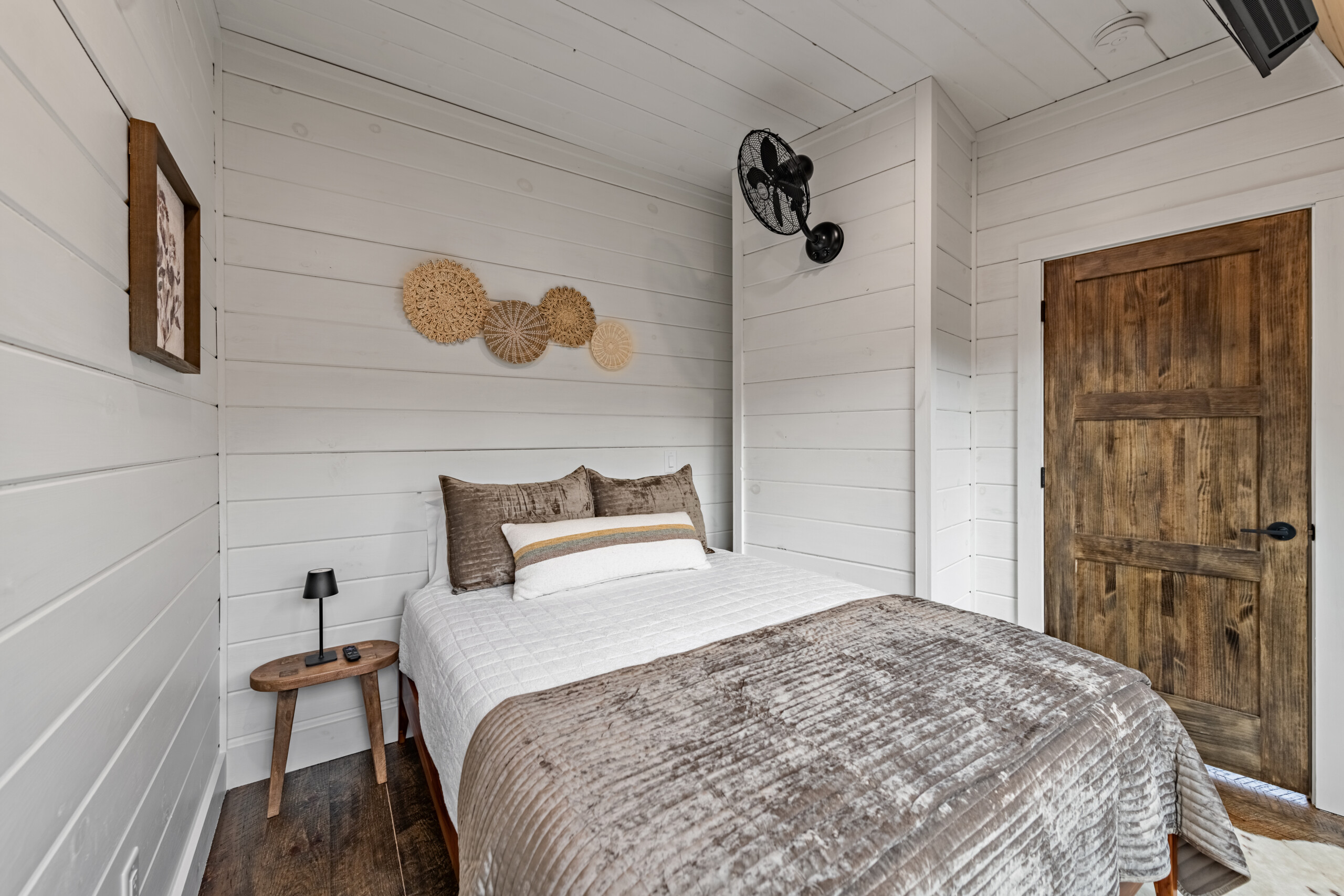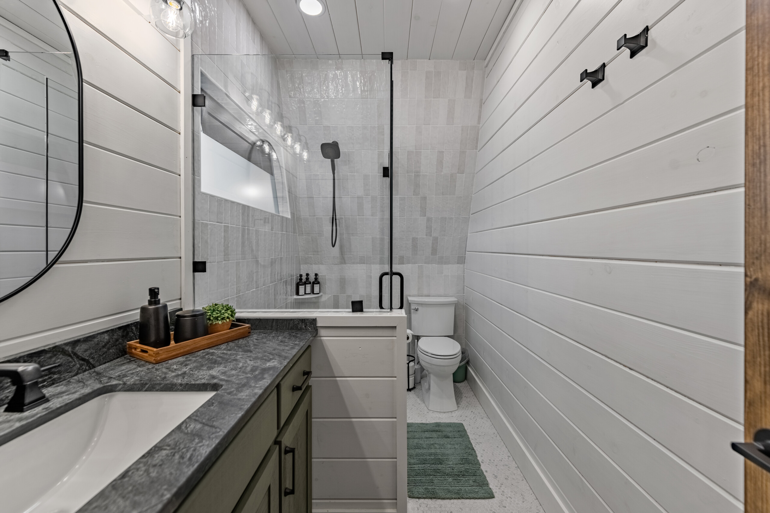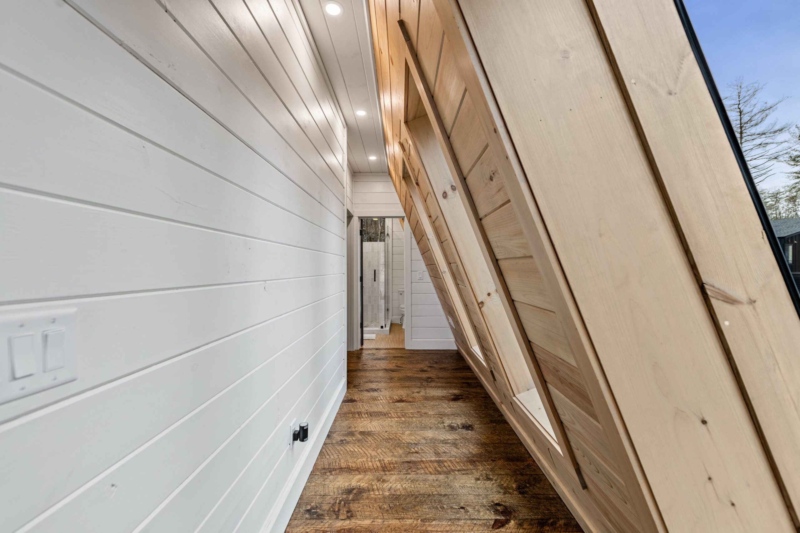 With five bedrooms across four levels, A-List Lodge was designed for groups who want space and comfort. Expect plush bedding, calming earthy tones, warm lighting, thoughtful architectural touches and windows that make you feel like you’re sleeping in the trees. The layout is ideal for families, couples traveling together, or friend groups, offering both togetherness and privacy. Bathrooms feel spa-inspired and clean, with modern finishes and thoughtful touches that elevate the stay.