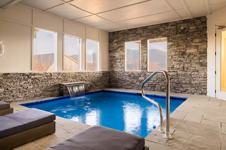Escape to Sunrise Summit, a luxurious 3-story mountain home nestled in the heart of the Smoky Mountains. With a private indoor saltwater pool, breathtaking panoramic views, and sleep accommodations for up to 12 guests, this 4-bedroom retreat offers the perfect blend of relation and adventure.