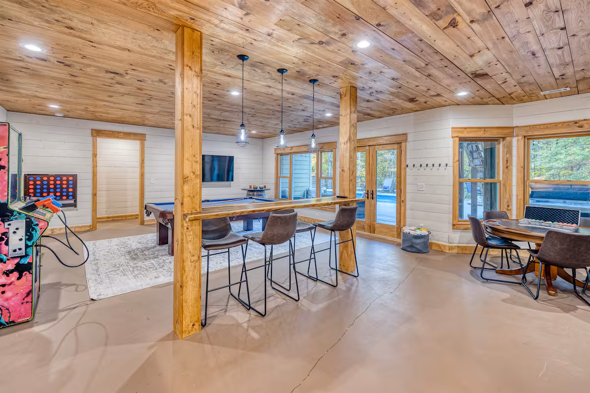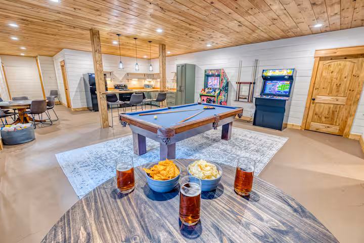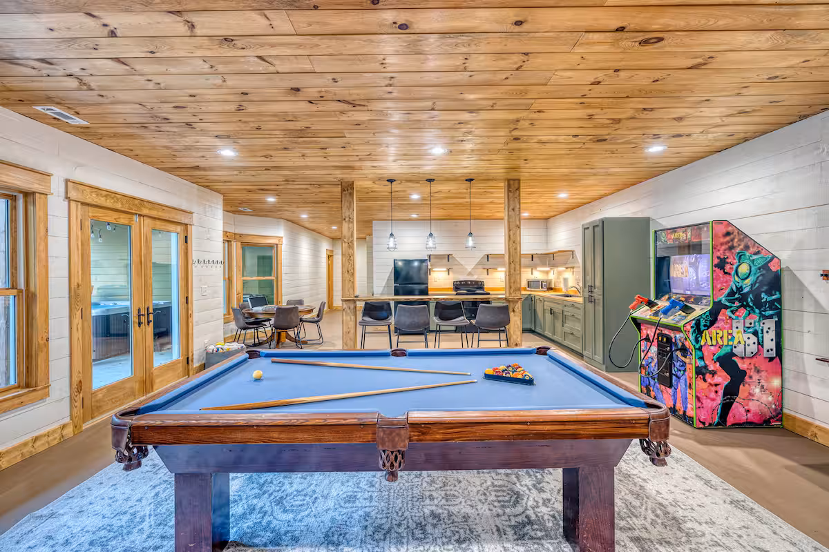 From relaxing by the HEATED pool, to competing for the high score on one of our full-size arcade games, Play All Day Retreat has it all to give your family a memorable Blue Ridge vacation experience.