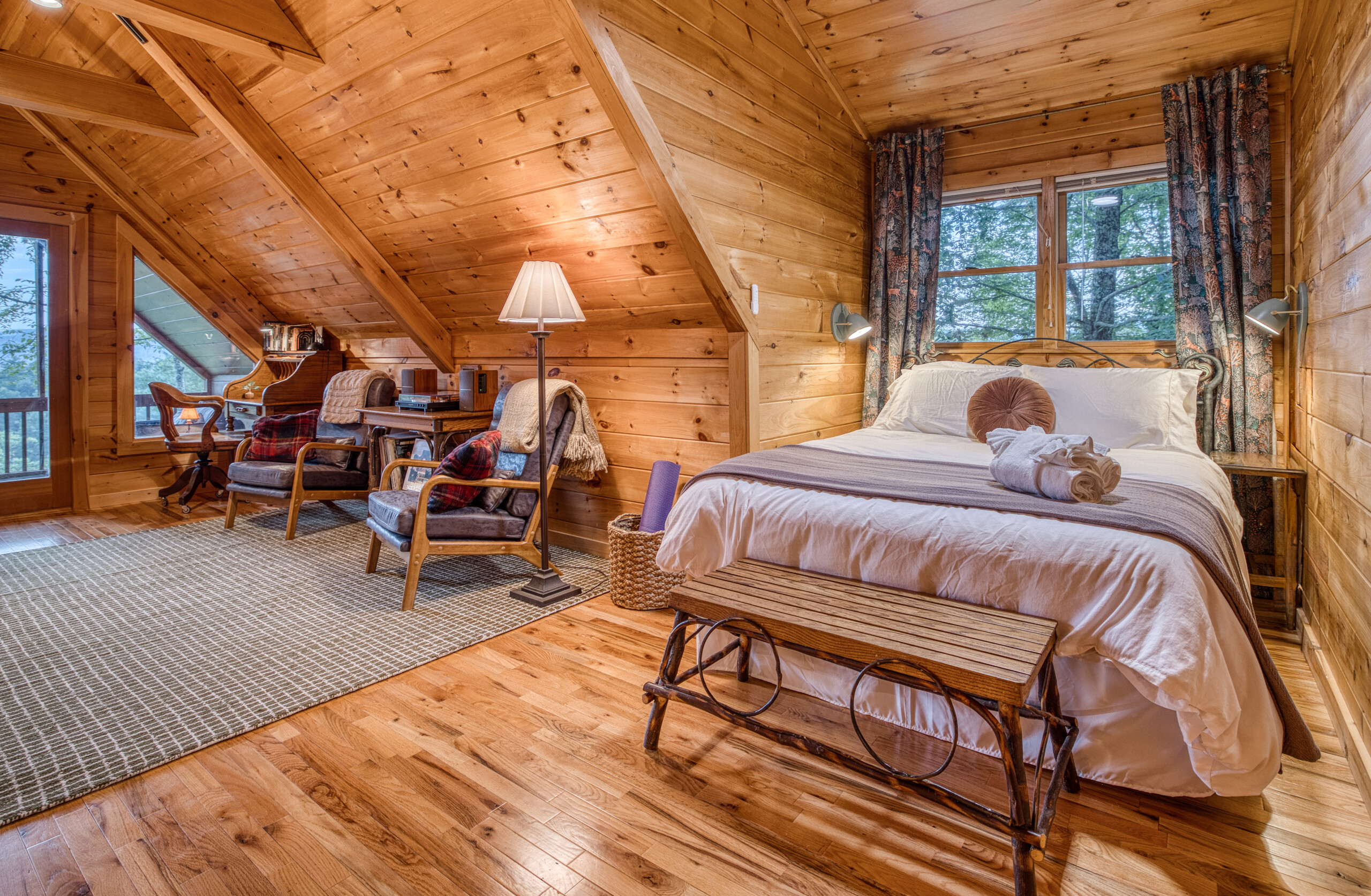 For those looking to minimize stair steps, there are just 4 steps to climb to enter the cabin and a bedroom and bathroom are located on the main level.