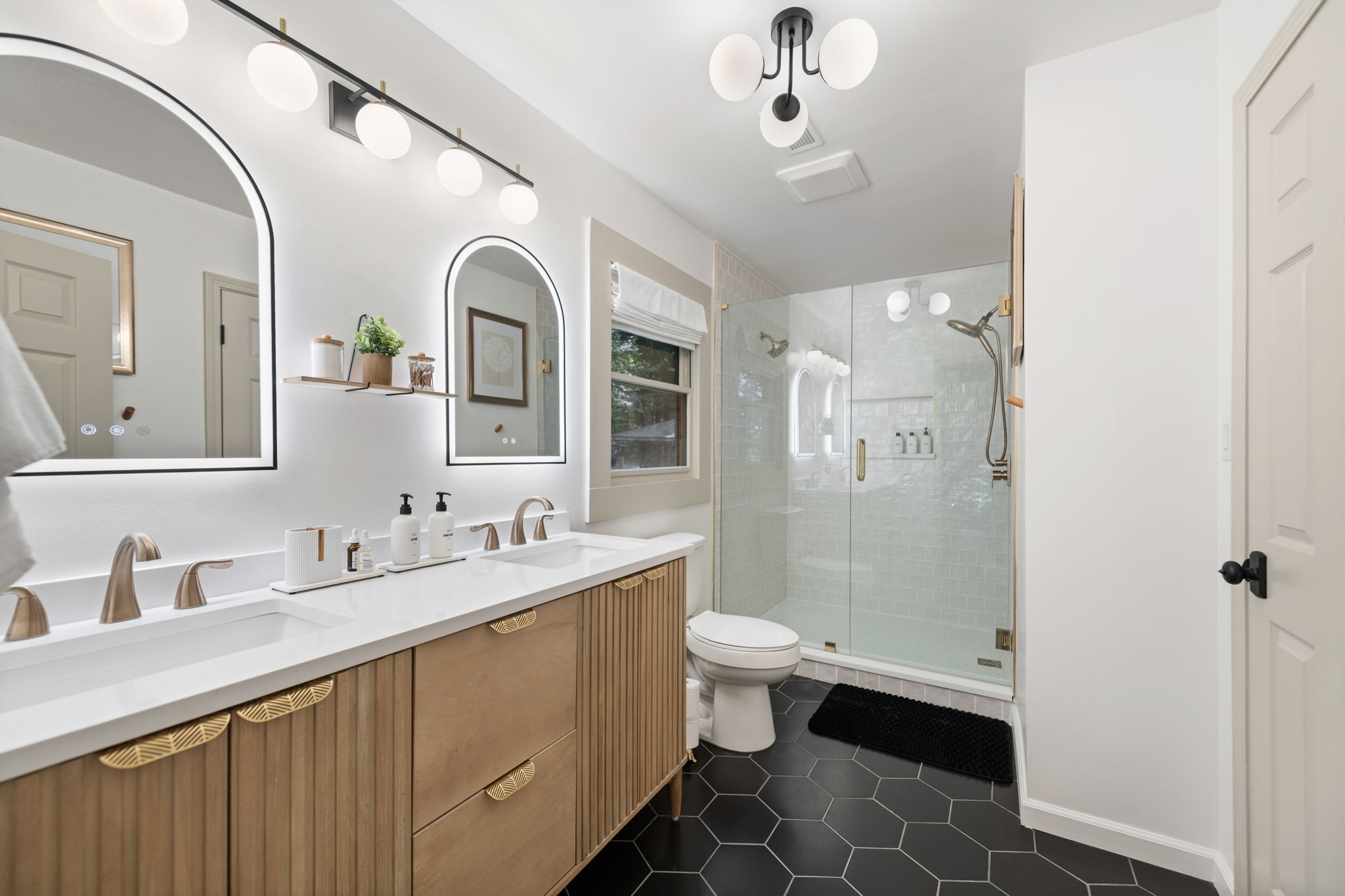 ∙ Extra-wide shower w/ dual showerheads