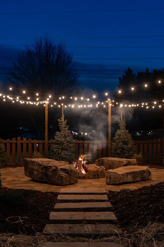 A cozy, resort-style fire pit with ample seating for evening conversations.