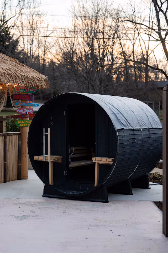 A relaxing hot tub and a 6-person authentic barrel sauna.