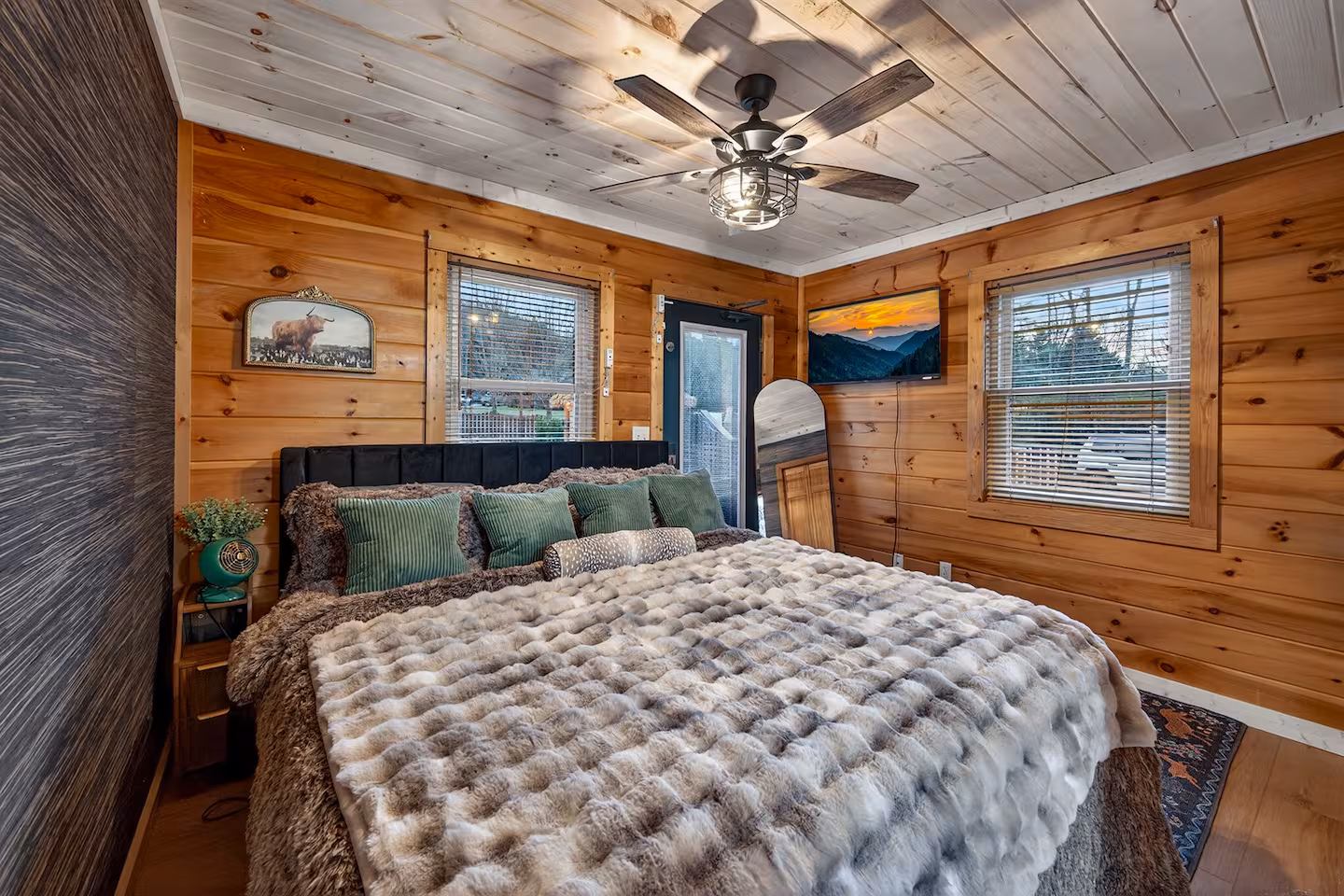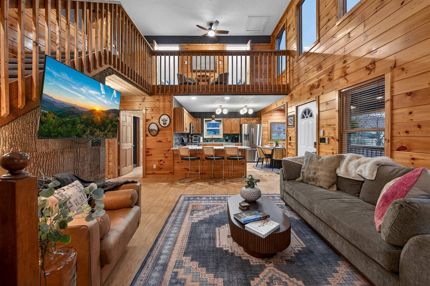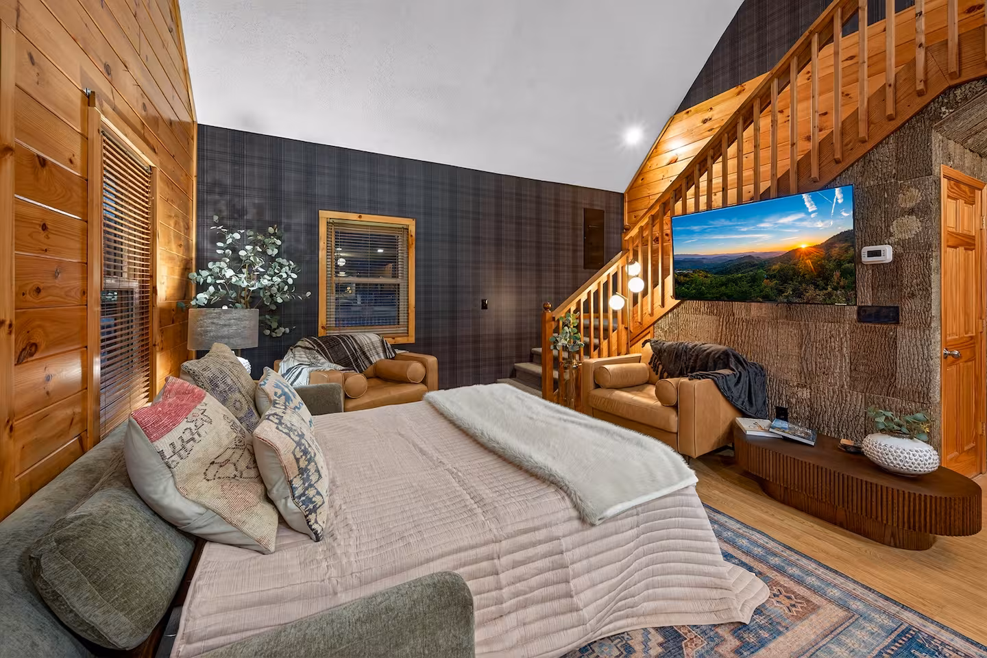 This Mountain Modern Ranch is designed for fun, laughter, and unforgettable moments, set against the gorgeous backdrop of the Great Smoky Mountains. Thoughtfully designed for elevated relaxation and endless enjoyment, the ranch comfortably sleeps 12 guests. Welcome to Smokey Mountain Ranch!