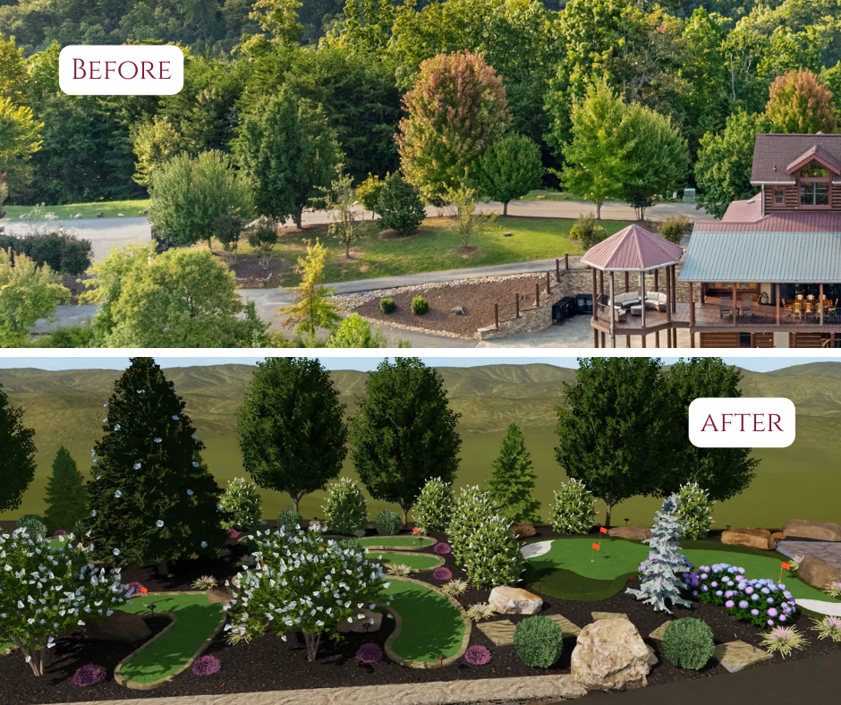 The renovations include the addition of a resort-style outdoor pool with tanning shelf and bubblers, an elevated spa with spillway, a swim-up bar, and a fully reimagined backyard oasis featuring multiple fire features, a 9-hole putt-putt course, chipping and putting greens, hammocks with panoramic views, and a new pickleball court with basketball goal. Interior upgrades include an enhanced game room with custom bunks and mural, along with the creation of a new family suite on the lower level.