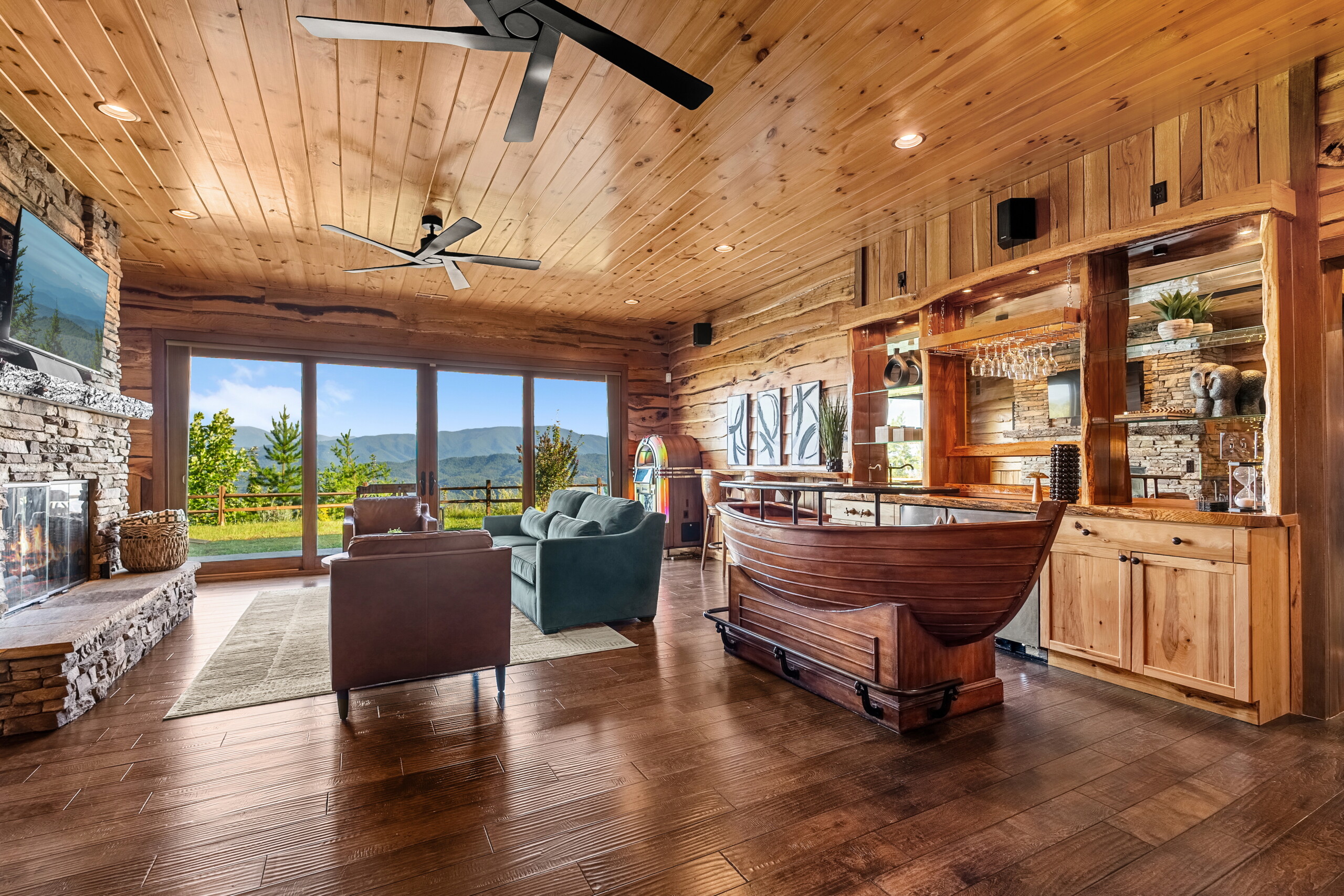 Presented by Mountain Vibe Vacations, Fine As Wine is a designer-decorated luxury mountain retreat located in the prestigious Summit on Bluff Mountain, offering expansive views, upscale interiors, and an unforgettable outdoor living experience. Set just minutes from Pigeon Forge and Dollywood, this reimagined estate blends high-end comfort with resort-style amenities — making it ideal for family gatherings, group getaways, and special occasions.